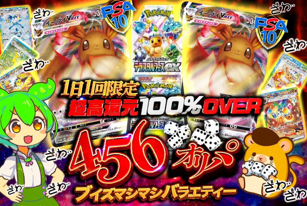 トレカレインボーでは、還元率100%超・98%以上のガチャが常設・期間限定で登場します。業界平均の還元率と比較しても高水準で、同じ予算でより多くのカードを受け取れる可能性があります。